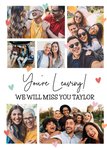 "You're leaving we will miss you Taylor". 'We will miss you Taylor' can be personalised!