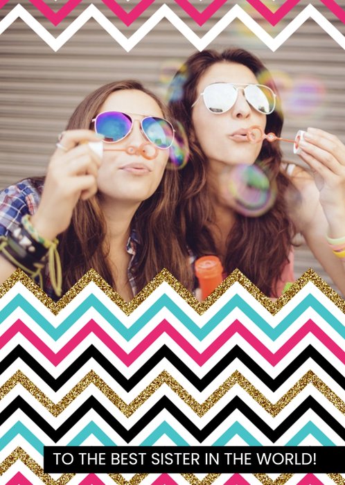 Zig Zag Personalised Photo Upload Happy Birthday Card For Sister