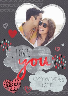 Grey, Black And Pink I Love You Heart-Shaped Photo Upload Valentine's Day Card