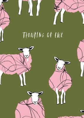 Illustrations Of Pink Sheep On A Green Background Thinking Of You Card