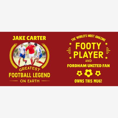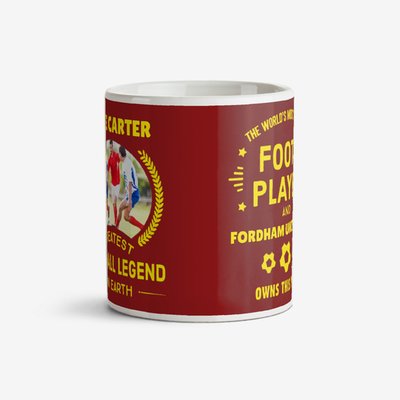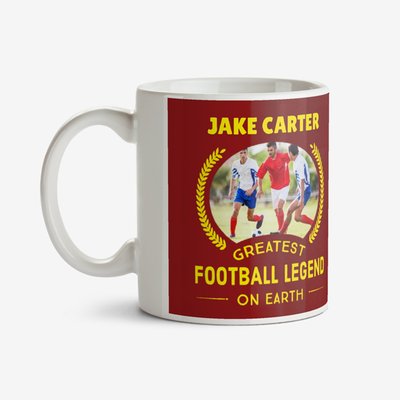 Typographic Greatest Football Legend On Earth Photo Upload Mug