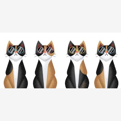 Folio Illustrations Of Four Cats In A Row Wearing Different Coloured Sunglasses Mug