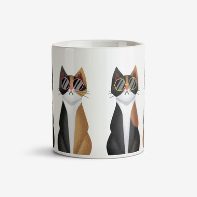 Folio Illustrations Of Four Cats In A Row Wearing Different Coloured Sunglasses Mug image 4