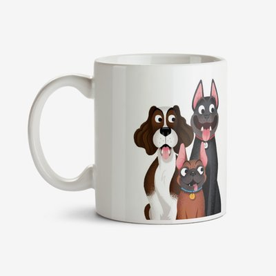 Folio Illustration Two Duplicate Images Of Three Happy Dogs Mug
