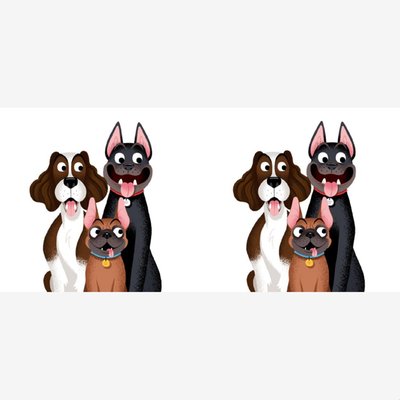 Folio Illustration Two Duplicate Images Of Three Happy Dogs Mug image 1