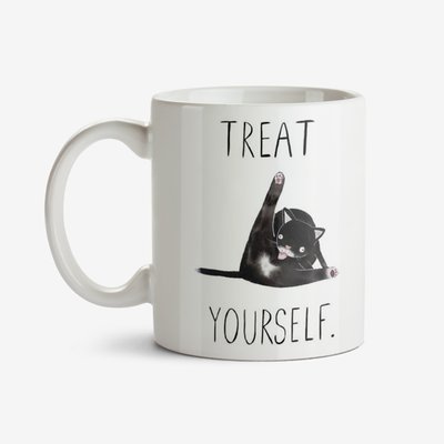 Jolly Awesome Treat Yourself Funny Cat mug