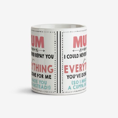Mum I Can Never Repay You For Everything You've Done For Me Mother's Day Mug