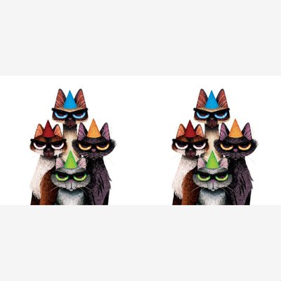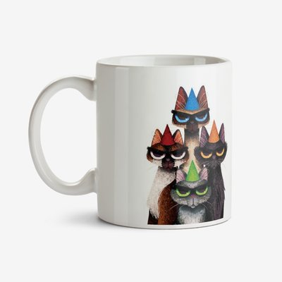 Folio Two Duplicate Illustrations Of Four Cats Wearing Party Hats Mug