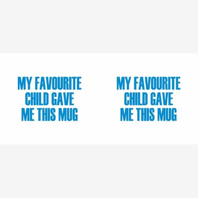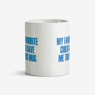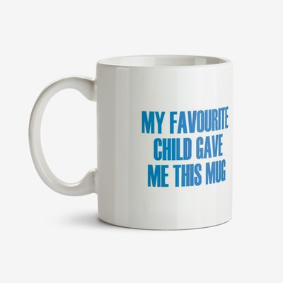 White typographic mug with a caption that reads My Favourite Child Gave Me This Mug