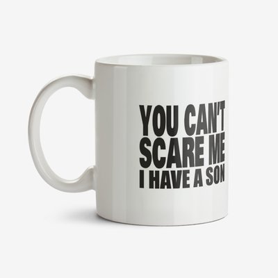 White typographic mug with a caption that reads You Can't Scare Me I Have A Son