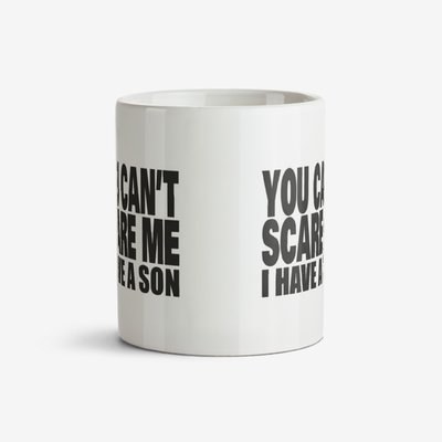 White typographic mug with a caption that reads You Can't Scare Me I Have A Son image 3