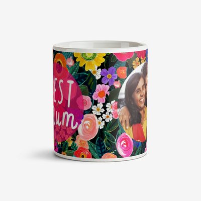 Katt Jones Hula Figg Best Mum Hand Illustrated Flowers Photo Upload Mug