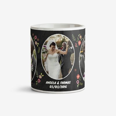 Wedding Day Vintage Floral Photo Upload Mug