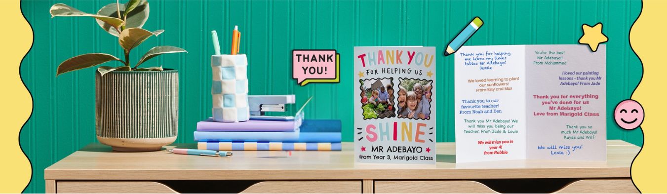 Looking for the perfect way to say “thank you” to your favorite teacher? Whether it’s the end of the school year, graduation, or just a moment to show your appreciation, our unique thank you teacher cards make it easy to share your gratitude. From funny and lighthearted designs to heartfelt and meaningful messages, you’ll find the perfect card to celebrate their patience, guidance, and dedication. Add a personal touch with a custom message or photo to make it truly one-of-a-kind. Browse our collection today and make your teacher feel extra special.